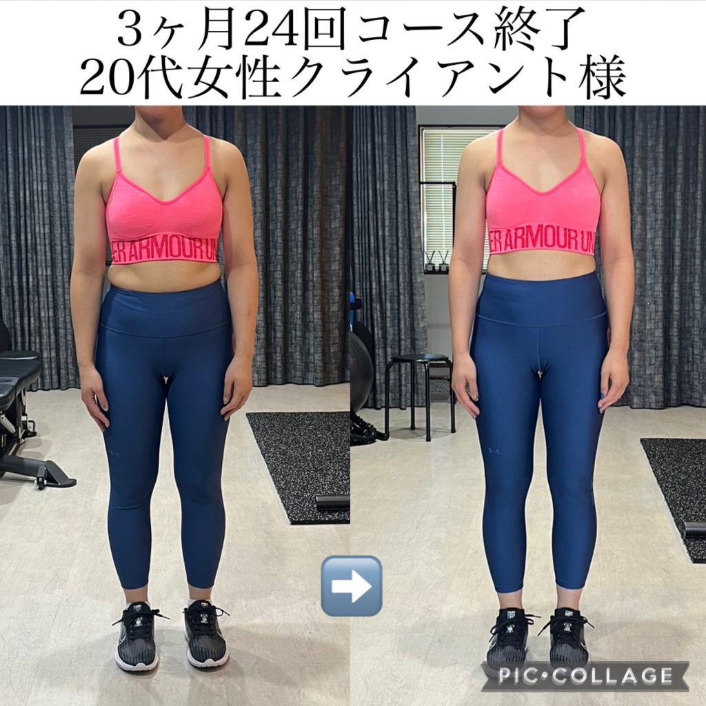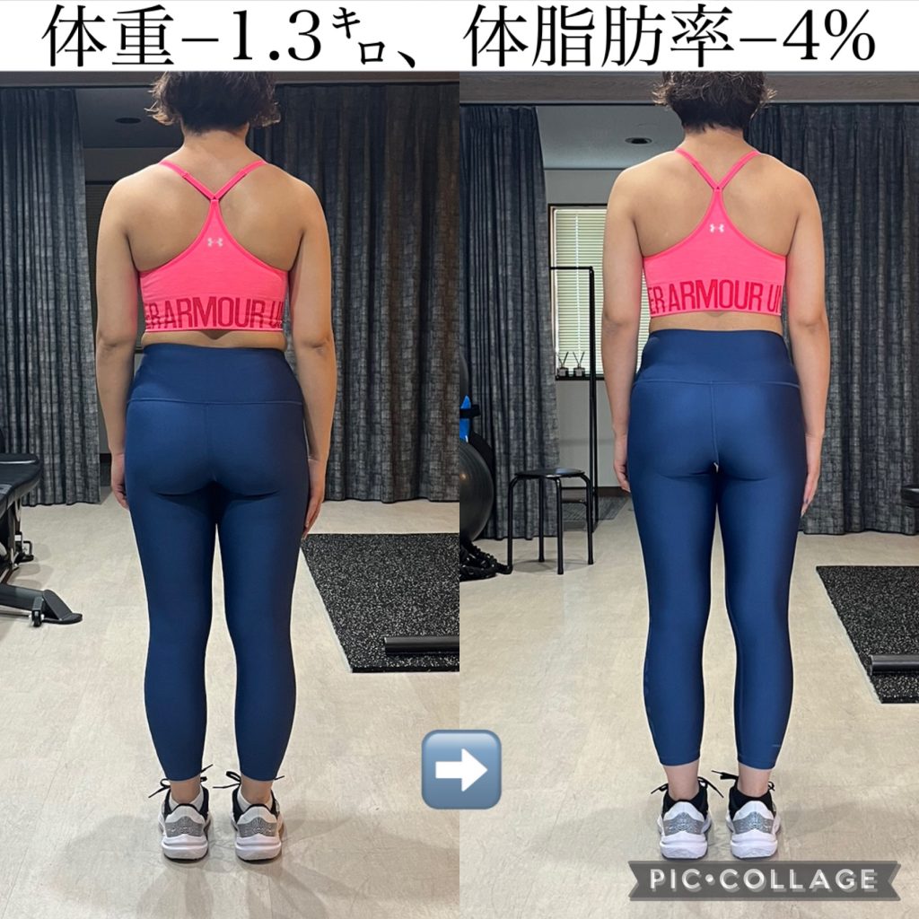 20代女性クライアント様3ヵ月のダイエット成果!体重-1.4㌔、体脂肪率-4% 体重は少しの変化ですが、見た目の変化が凄いですね!お尻のました🍑