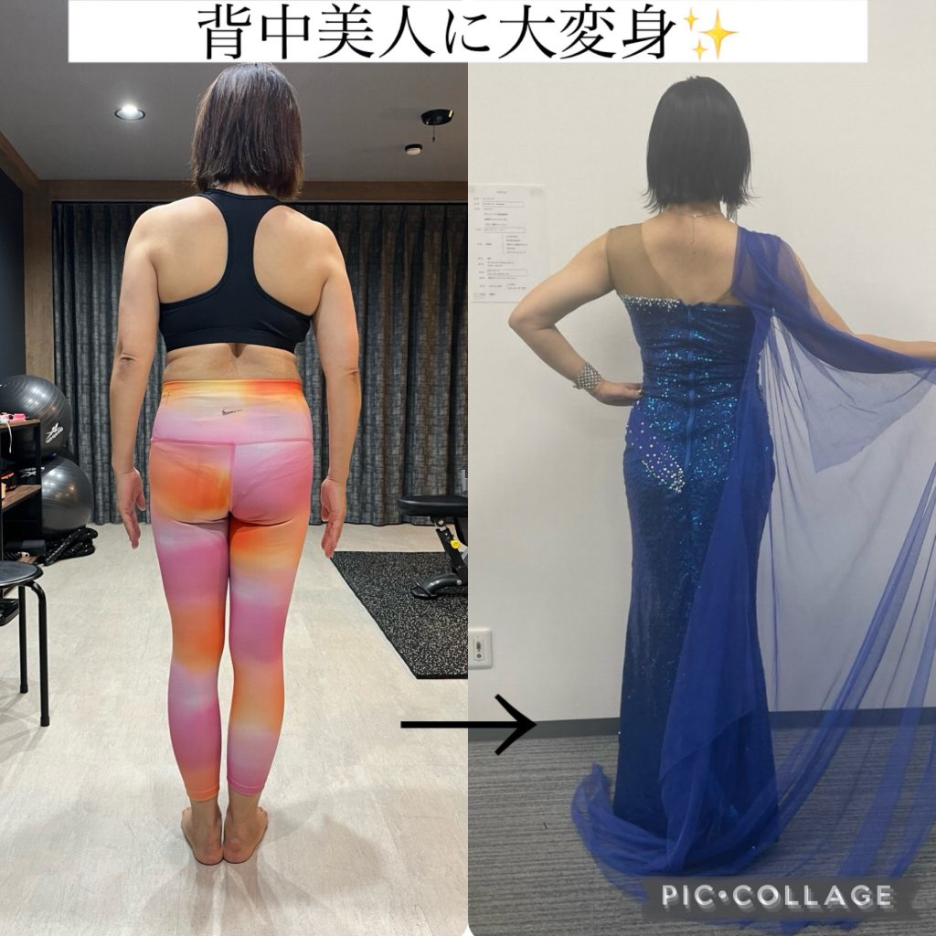 50代女性クライアント様3ヵ月のビフォーアフター!トレーニング経験0から大会に出場!体重は-6キロ減、背中もスッキリ✨石川県小松市から当ジムに週3回通ってくれてます。